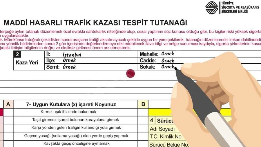 Eğer kazada yaralanma yoksa ve taraflar anlaşabiliyorsa kaza tespit tutanağı doldurun. Araçların ve hasarların fotoğraflarını çekmeyi unutmayın.